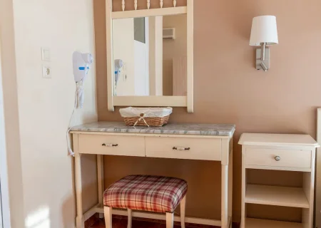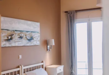 These spacious 40m² studios are perfect for couples or small families seeking comfort and convenience. Each studio offers flexible sleeping arrangements with a double bed or two single beds, plus two pull-out sofa beds for extra accommodation. The kitchenette, washing machine and modern bathroom with shower provide all the essentials. Step out onto the furnished terrace to enjoy amazing sea views