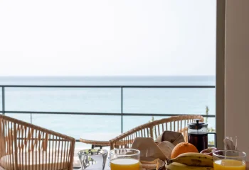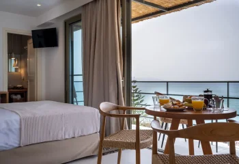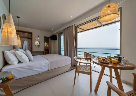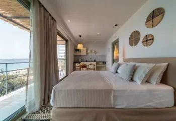 Enjoy peaceful moments on your private balcony, with beautiful views of Lourdas Bay and the gentle rhythm of the sea stretching out before you.